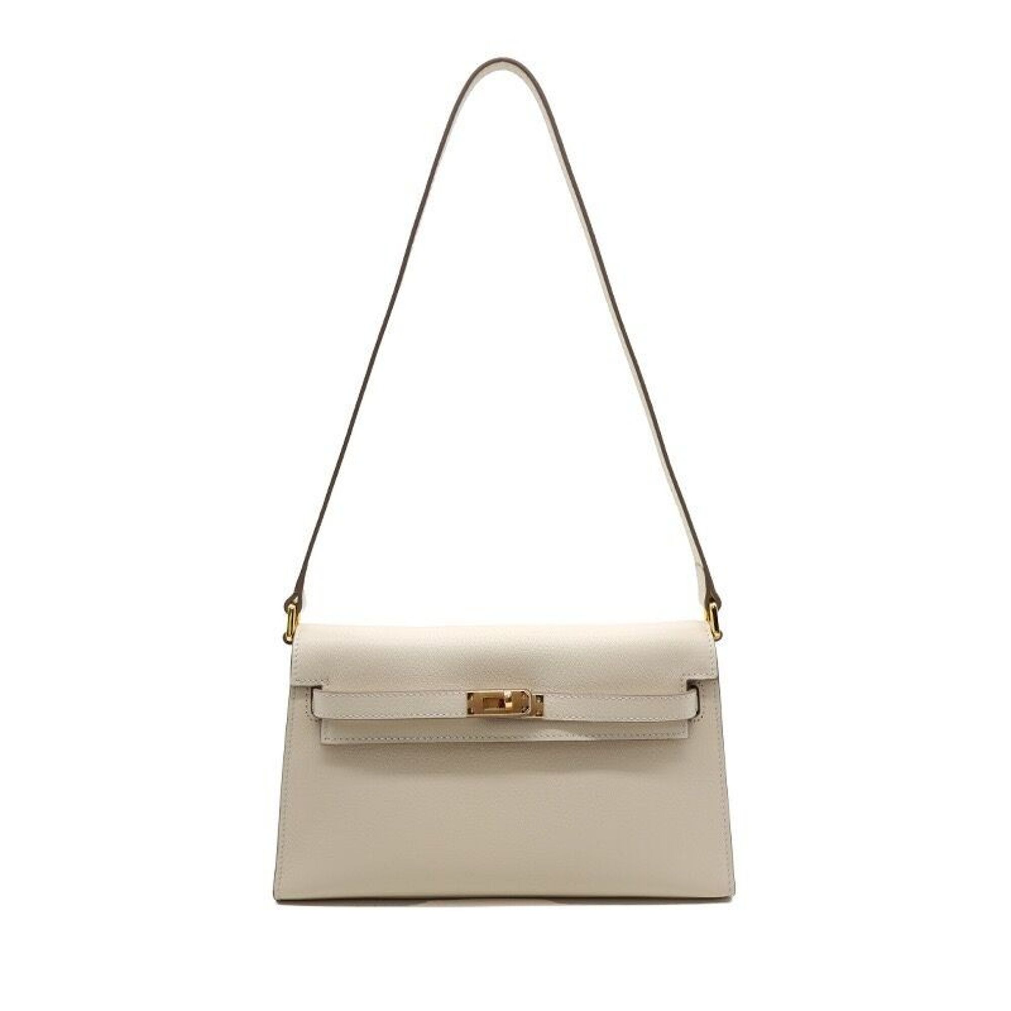 Sac baguette bandoulière en cuir véritable avec fermeture métallique, quatre coloris disponibles.